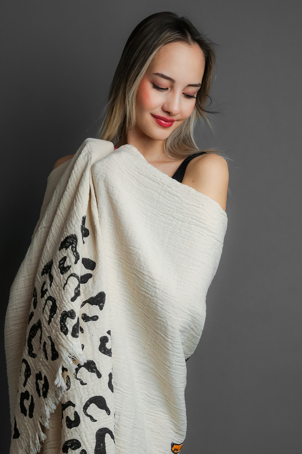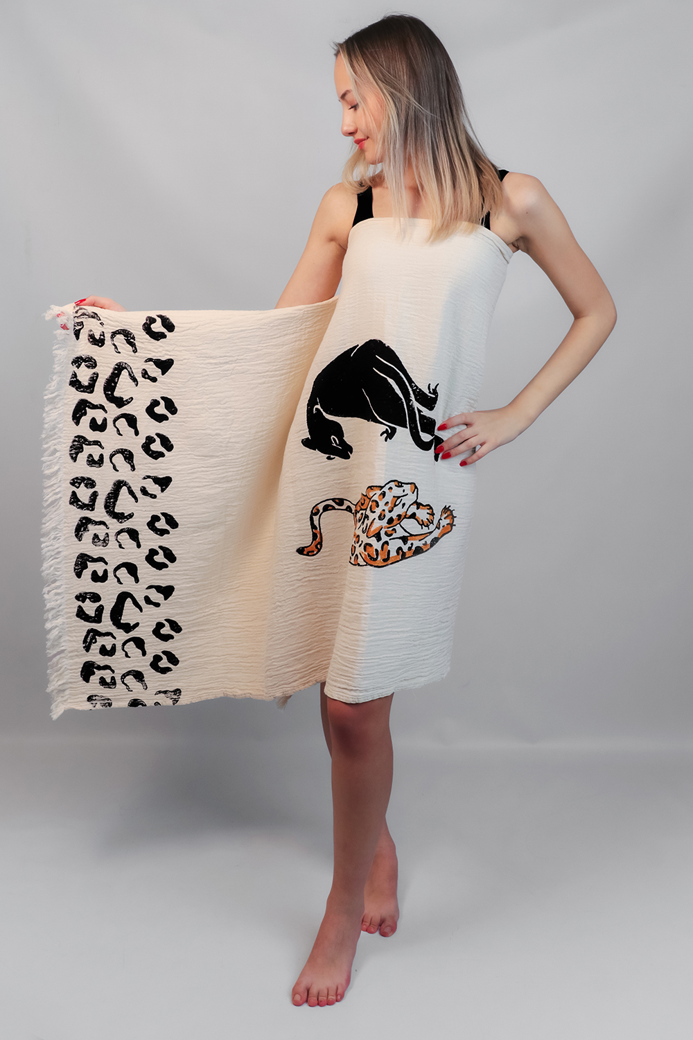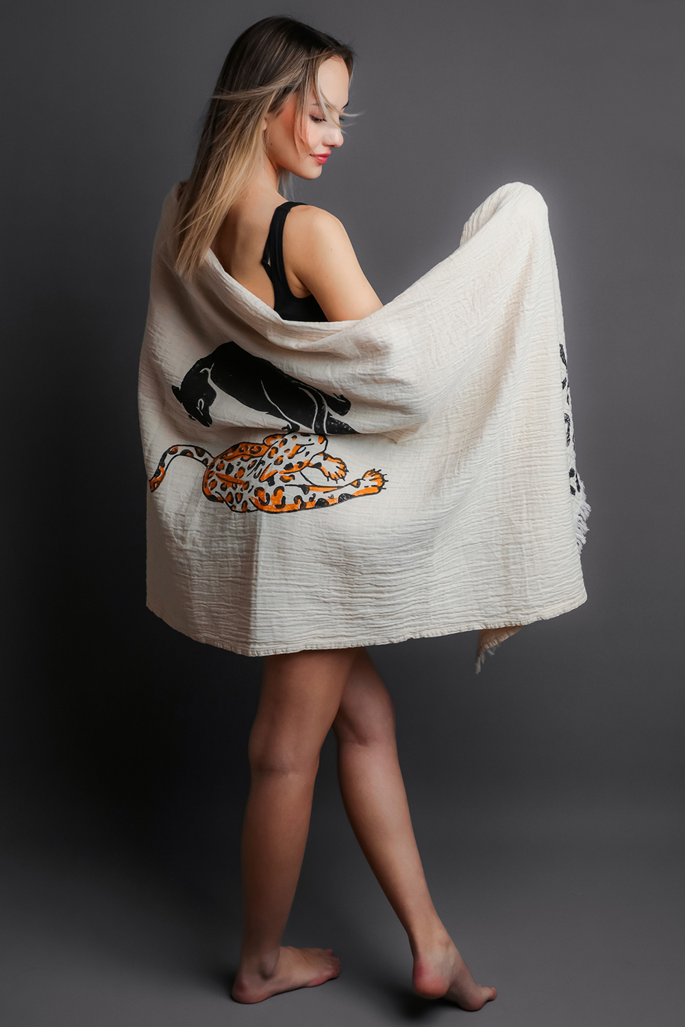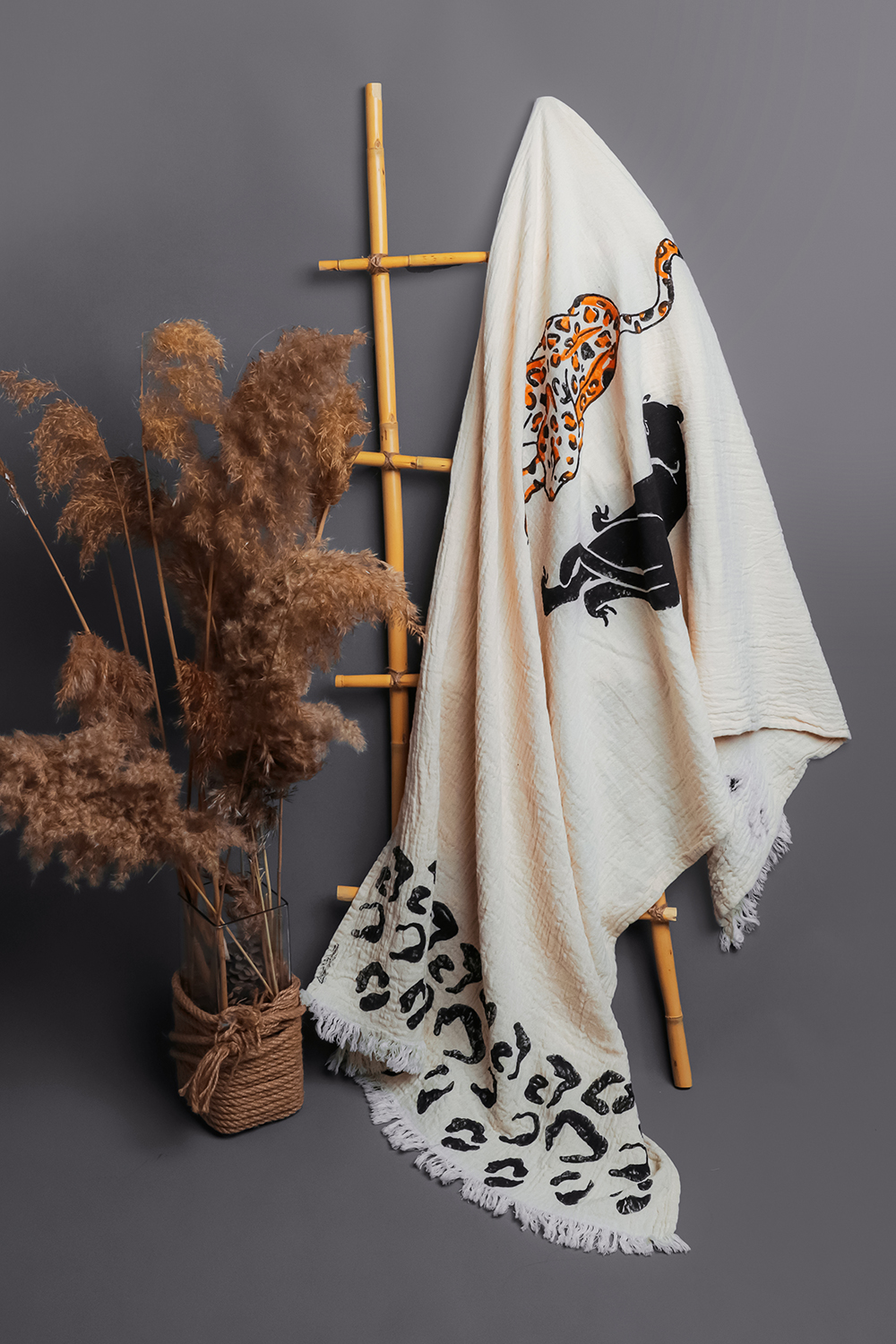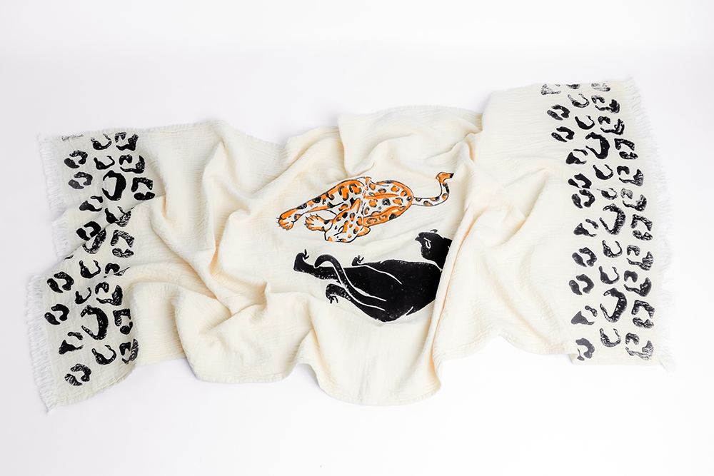One piece of 100% cotton muslin fabric peshtemal, all stone printed.