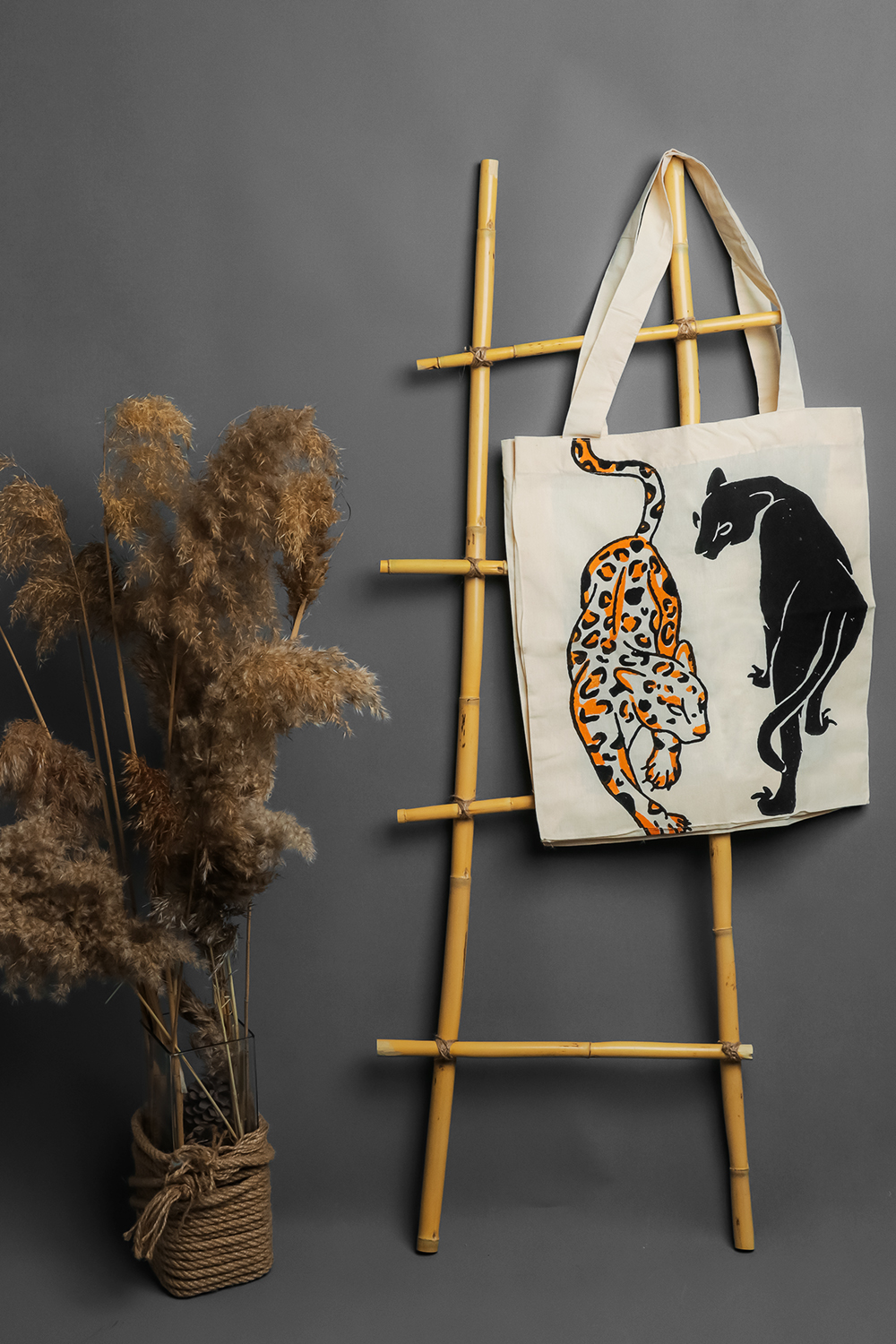 One piece of 100% cotton gabardine fabric tote bag, all stone printed.